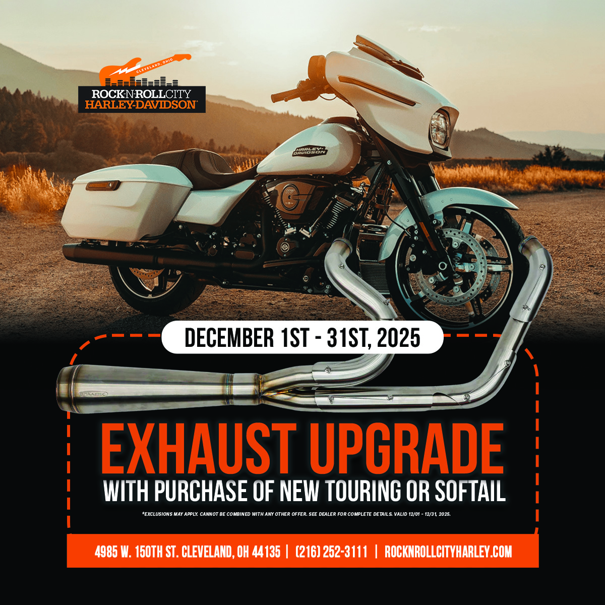 Turn up the sound and the style. Get an exhaust upgrade with the purchase of any new Touring or Softail—for a limited time this December. Ride out louder, bolder, and built your way.Shop New Inventory